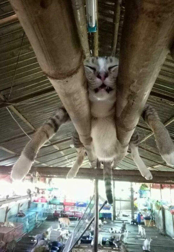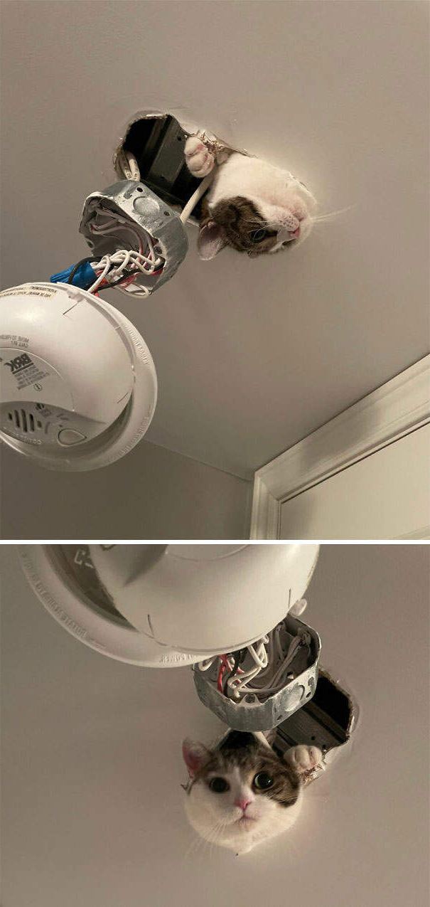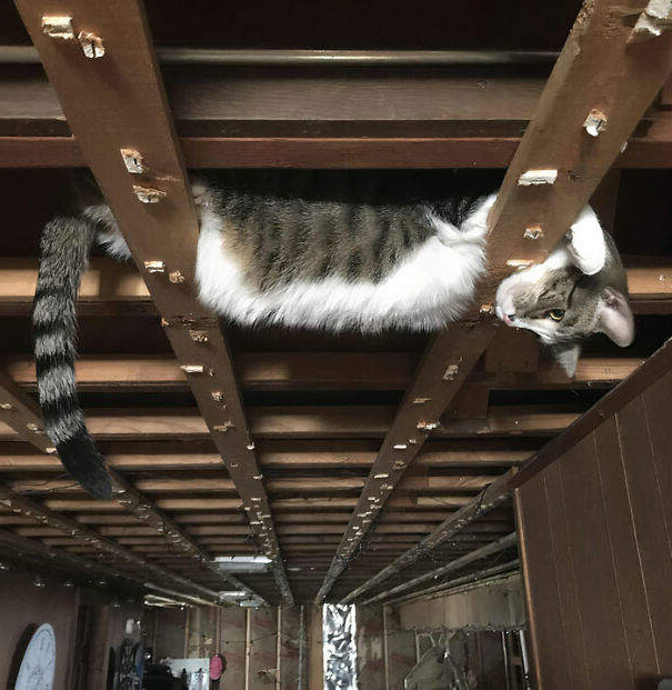 2021年10月19日貓咪是世界上最為廣泛的寵物之一,人類馴養貓咪當寵物的歷史已經有上萬年了,但養貓的人都知道,牠們是謎樣的生物~下面是一些喜歡趴在天花板上偷偷觀察人類的貓咪,人們抬頭看時一定會被嚇一跳,因為天花板上有一雙眼睛在直勾勾地盯著你!