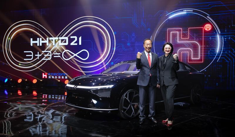 ▼去年鴻海科技日,郭台銘因為遠在美國,無法親自參加,只能以影片表達支持。今年他人在台灣,當然要來參加盛會。他以神秘嘉賓的身分,駕駛鴻華先進開發的「E級距電動車」親自到場參加。「E級距電動車」是以高端商務、迎賓及智能駕駛體驗為主要訴求,為MIH電動車開放平台首款旗艦車型。