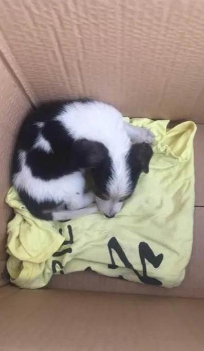 ▼男網友將狗狗帶回家,給狗狗吃了點東西,狗狗吃飽喝足後就安心睡了過去。牠躺在紙箱中睡得很香甜,可能好久沒有這麼安心地睡過了。男網友笑說:「牠的睡姿這麼無辜,剛剛卻對我那麼兇,這反差太大了!」