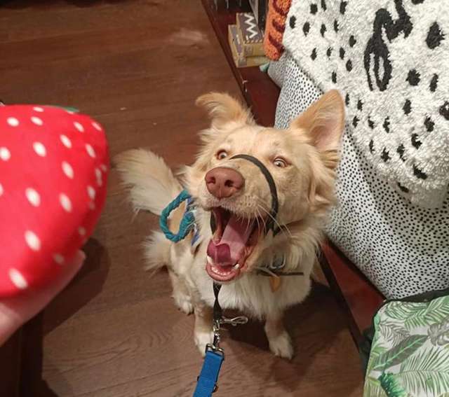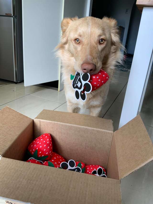 最愛「草莓玩具停產」服務犬超鬱卒 暖心店家聯絡「送2個」狗狗開箱嗨翻:這些都是給我的?