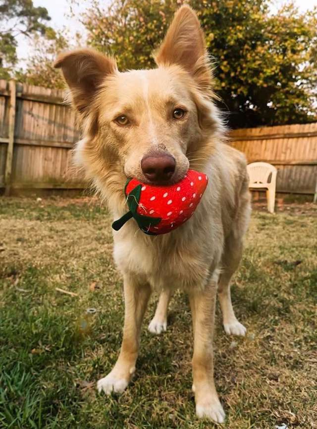 ▼失去心愛玩具的Marley非常失落,Martin就想重新給牠買一個草莓玩具,但那款玩具已經停產了。Martin上網求助,希望有人身邊有多的草莓玩具的話,可以分給Marley一個。