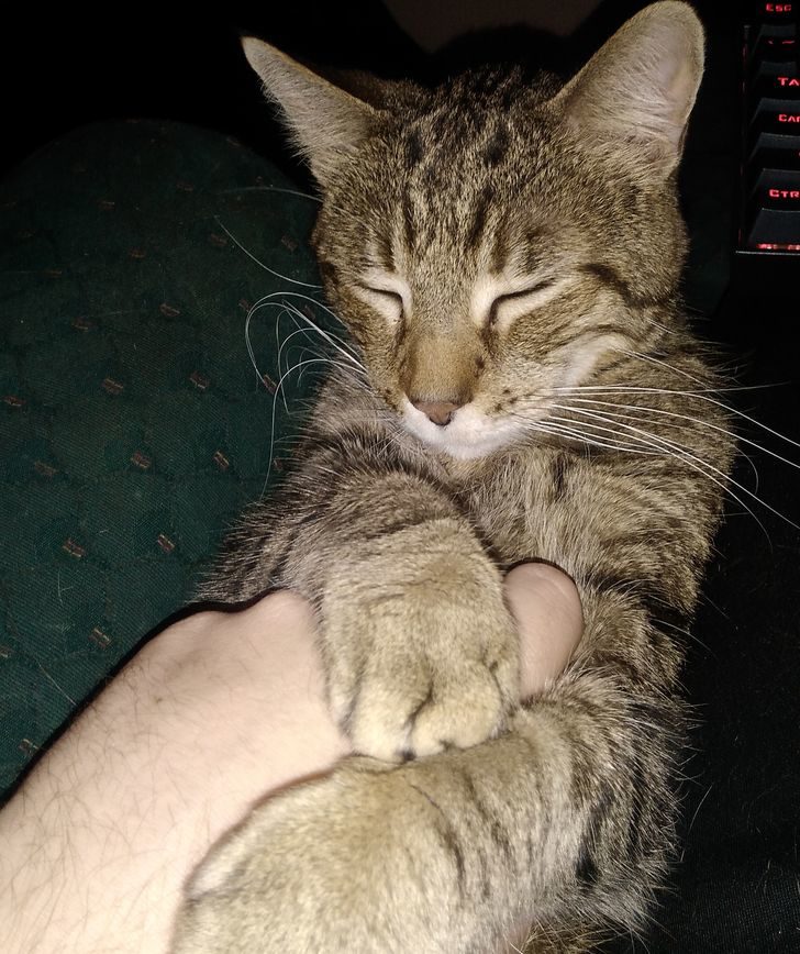 ▼牠來到這個家12年了,還是很喜歡握著主人的手睡覺。