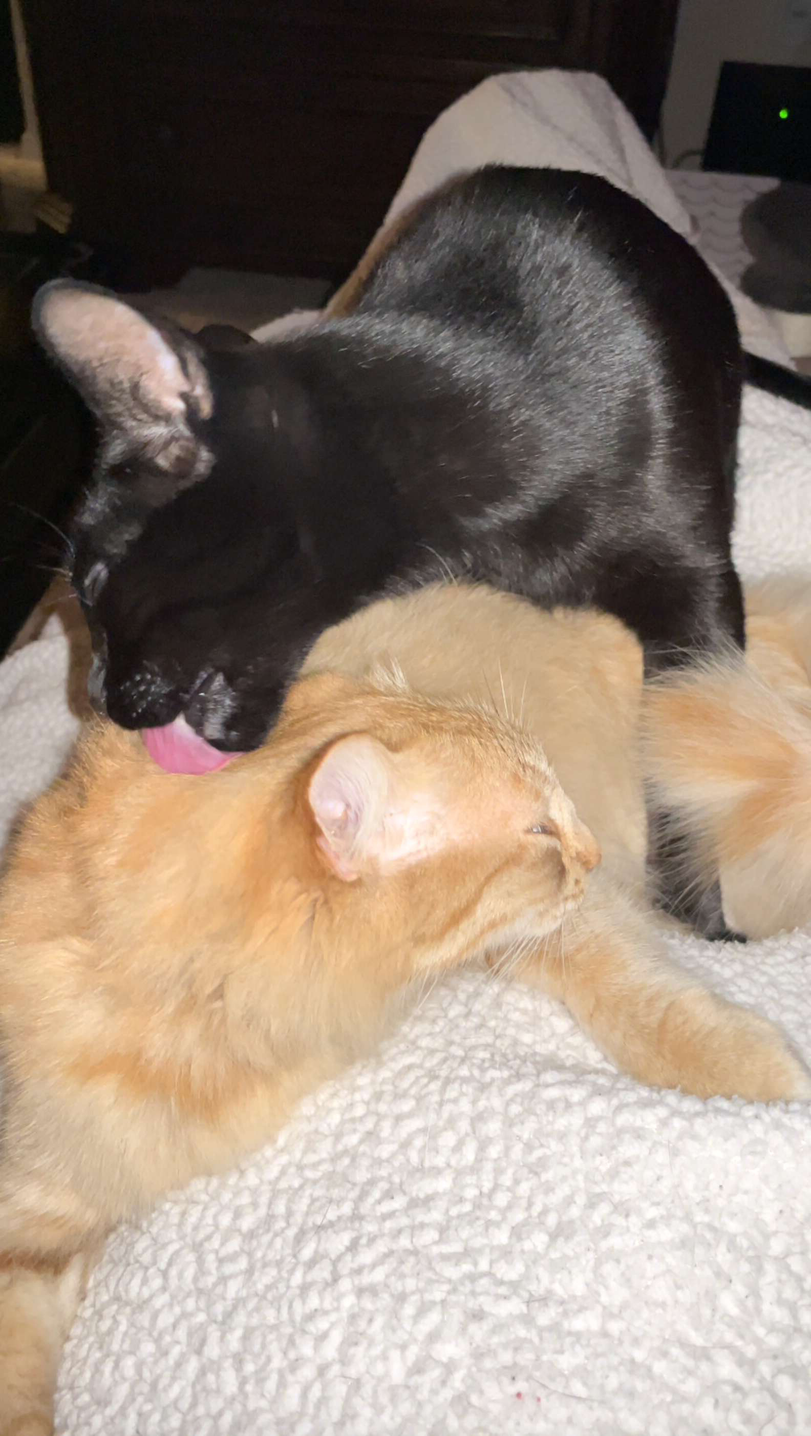 ▼Shakira是一隻很害羞的貓咪,剛開始不願意靠近Nick。後來Nick戴上了蝙蝠翅膀,Shakira才漸漸卸下心防,牠會好奇地過來觀察、聞嗅,2隻貓咪逐漸成為了朋友。
