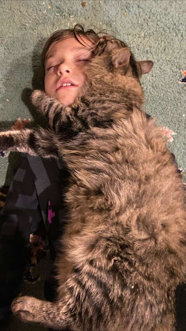 ▼Ashley說:「如果你問Noah他最喜歡的人是誰?他的答案一定是Meowsalot。Meowsalot對他來說不僅僅貓咪,還是最好的玩伴、最親密的家人。」