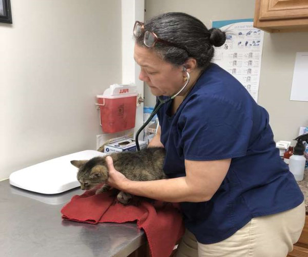 ▼Tiger流浪多年,但身體狀況還不錯,只是眼睛有一點受傷,還有輕微的體重不足。這麼多年來一定也有其他善心人士幫助牠,牠才能等到跟家人團聚的機會。Carol透過協會聯絡到John和Maggie,他們馬上趕往協會,去見走失11年的愛貓。