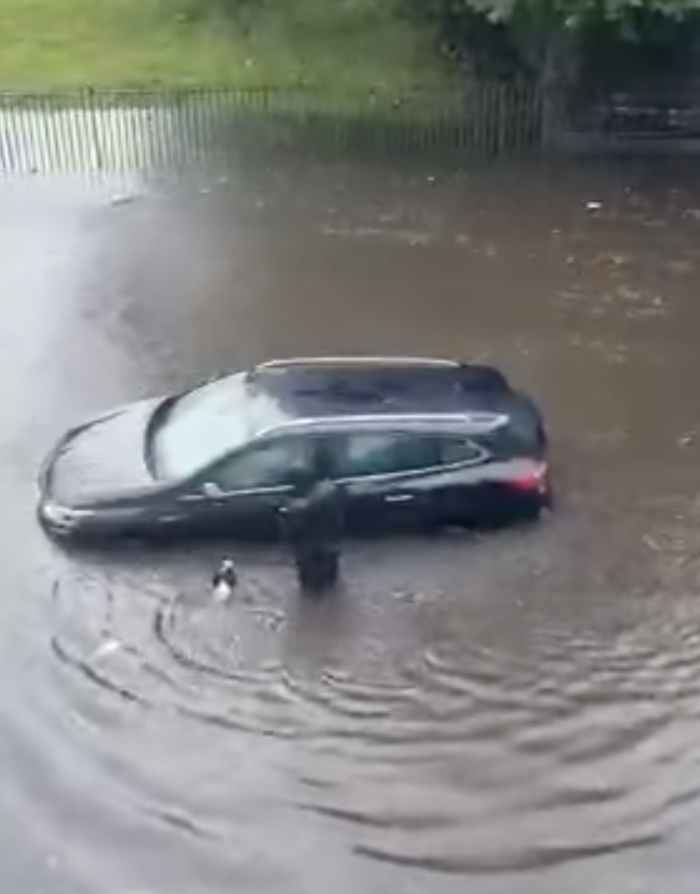 汽車淹水拋錨!暖心女路過幫推 旁邊冒出「可愛小腦袋瓜」:我也來助一臂之力!