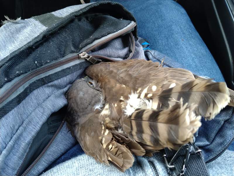 ▼推主在蜜月前夕救助貓頭鷹,覺得這件事非常有趣:「今日大綱:不明生物『烏鴉好可怕QQ』→褐鷹鴞『我是野生貓頭鷹!人類啊,立刻解放我!』」
