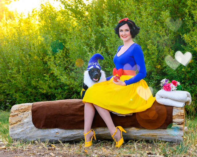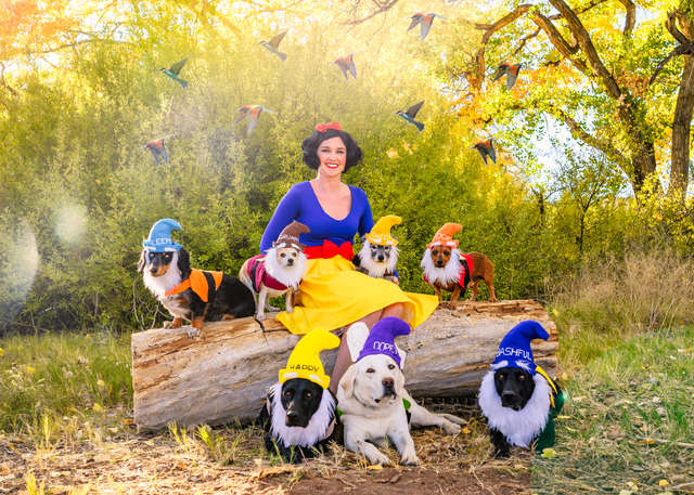 ▼薩沙和她的岳母在萬聖節之前花了許多時間來準備這些服飾,為所有狗狗進行裝扮。而熟悉迪士尼動畫的朋友也都知道,故事中有7個小矮人的公主,那就是最經典的白雪公主了!
