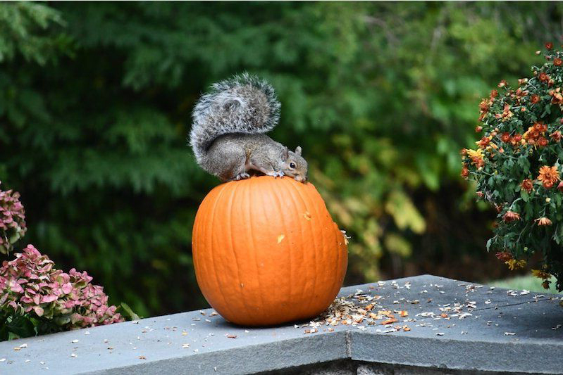 ハロウィンの時期、本場アメリカでは軒先の飾りカボチャが野生のリス達にビュッフェ形式で食べ尽くされ町中丸々太ったリスだらけになるの大好き🎃🐿️ pic.twitter.com/w56h0mDrGx