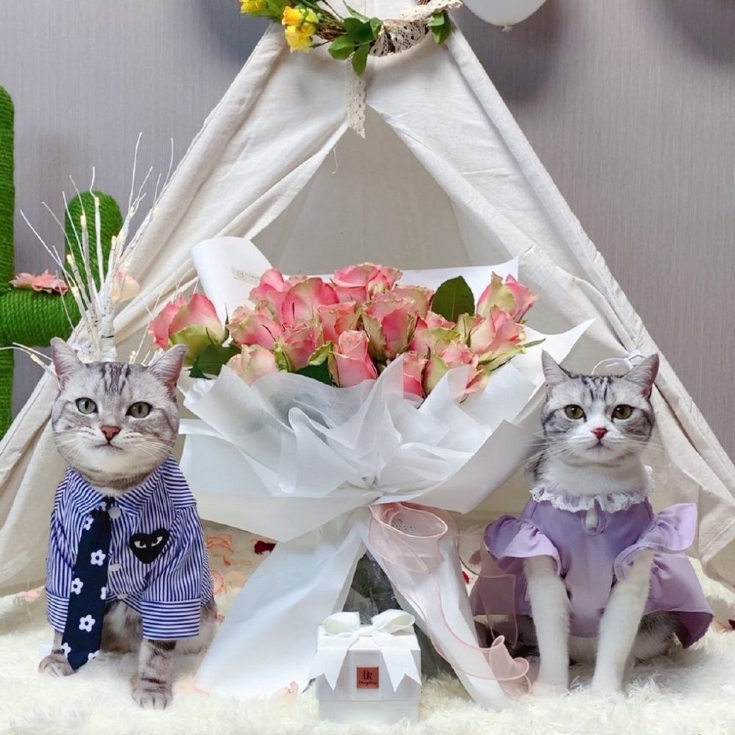 ▼泡芙有一個男朋友,那就是另一位萌寵博主「安生」。這隻叫安生的貓咪非常帥氣,跟泡芙坐在一起超級搭。兩隻萌貓一見鍾情,今年安生已經向泡芙求婚了。