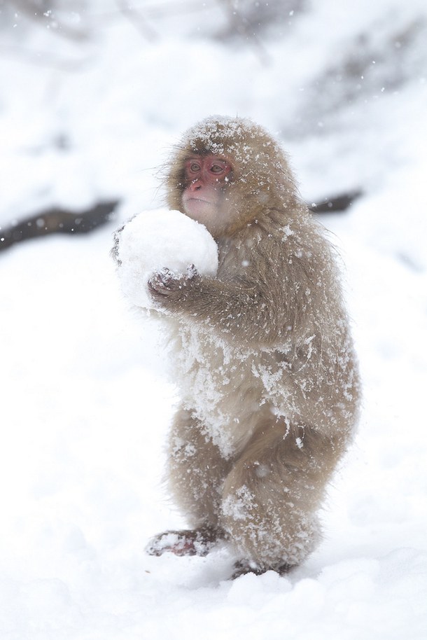 抱著雪球的小猴子真的好萌,網友們都超希望可以親眼看一次呢~「捏得好圓」、「猴子進化了」、「人類輸了」。看來猴子不只是會泡溫泉而已,連雪球比賽也可以加入了啦!