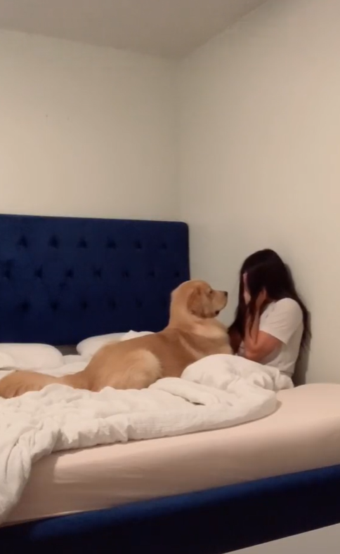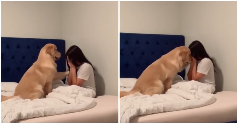 2021年11月01日黃金獵犬被稱為汪界中的「暖男」,牠們善良暖心、平易近人,而且非常溫柔。美國奧蘭多的一位飼主養了一隻叫Boone的金金,平時Boone非常懂事,飼主想看看自己傷心哭泣時牠會有什麼反應,就架設手機錄影,並坐在床上摀著臉。