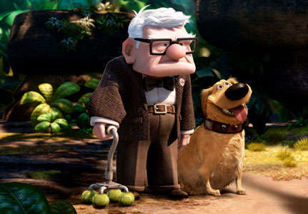 ▼頭髮花白的爺爺穿著西裝、拿著氣球,旁邊還跟著乖巧的狗狗,真是神還原。