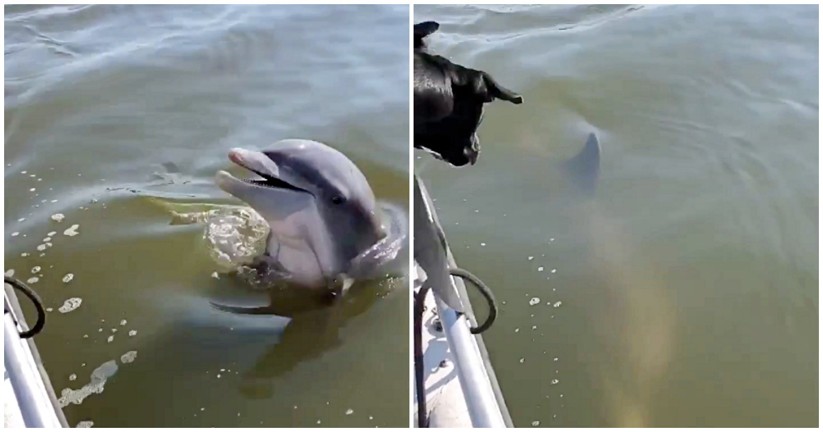 海裡的狗 VS 陸上的狗! 海豚友善「躍出水面」主動打招呼:泥好啊~