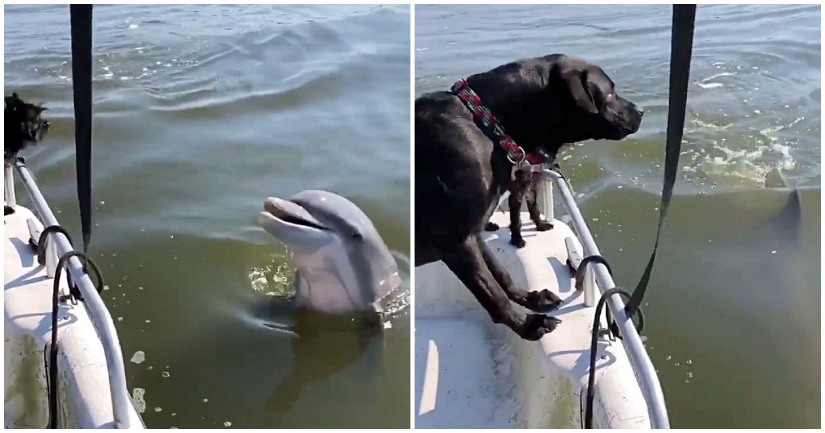 ▼Miles和Stanley都非常聰明,也很懂事。牠們對海豚非常好奇,但沒有跳下水跟海豚玩。海豚跟著小船游了一會兒就離開了。Magen說:「我看到這一幕覺得很開心。不同物種也能友善相處,我們能從動物身上學到很多東西。」