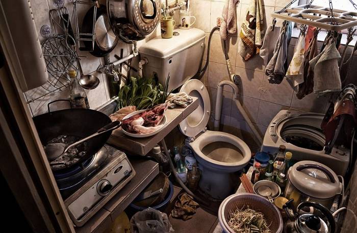 ▼在香港的很多出租屋中,為了節省空間,廚房和廁所直接是在一起的。
