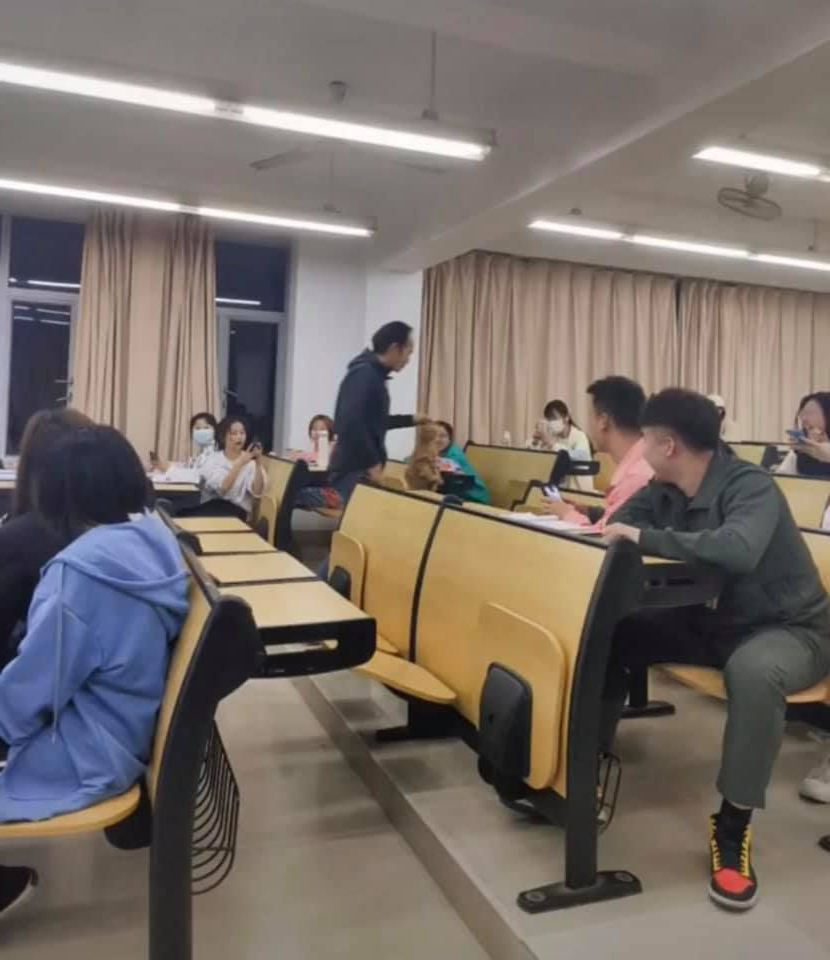 2021年11月08日這位同學怎麼毛毛的~日前一位女網友在臉書社團「爆笑公社」po出一系列照片,只見老師在課堂上認真講課,突然發現有一位同學與眾不同。老師鎖定目標後走過去,伸手將牠拎起來,原來那是一隻偷偷溜進教室的流浪貓!