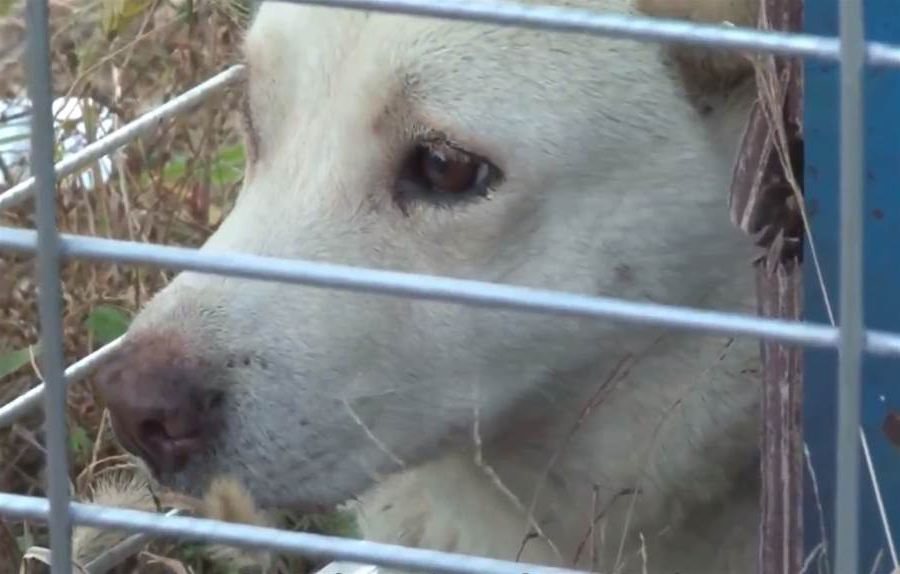 ▼救助中心得知東順的故事後,很快派工作人員來到現場,還帶來了捕捉工具,希望能將東順帶走,給牠好好檢查一下。2天沒吃東西的東順被籠子裡的肉香味吸引,輕手輕腳地走了進去,結果一下子被抓住了。