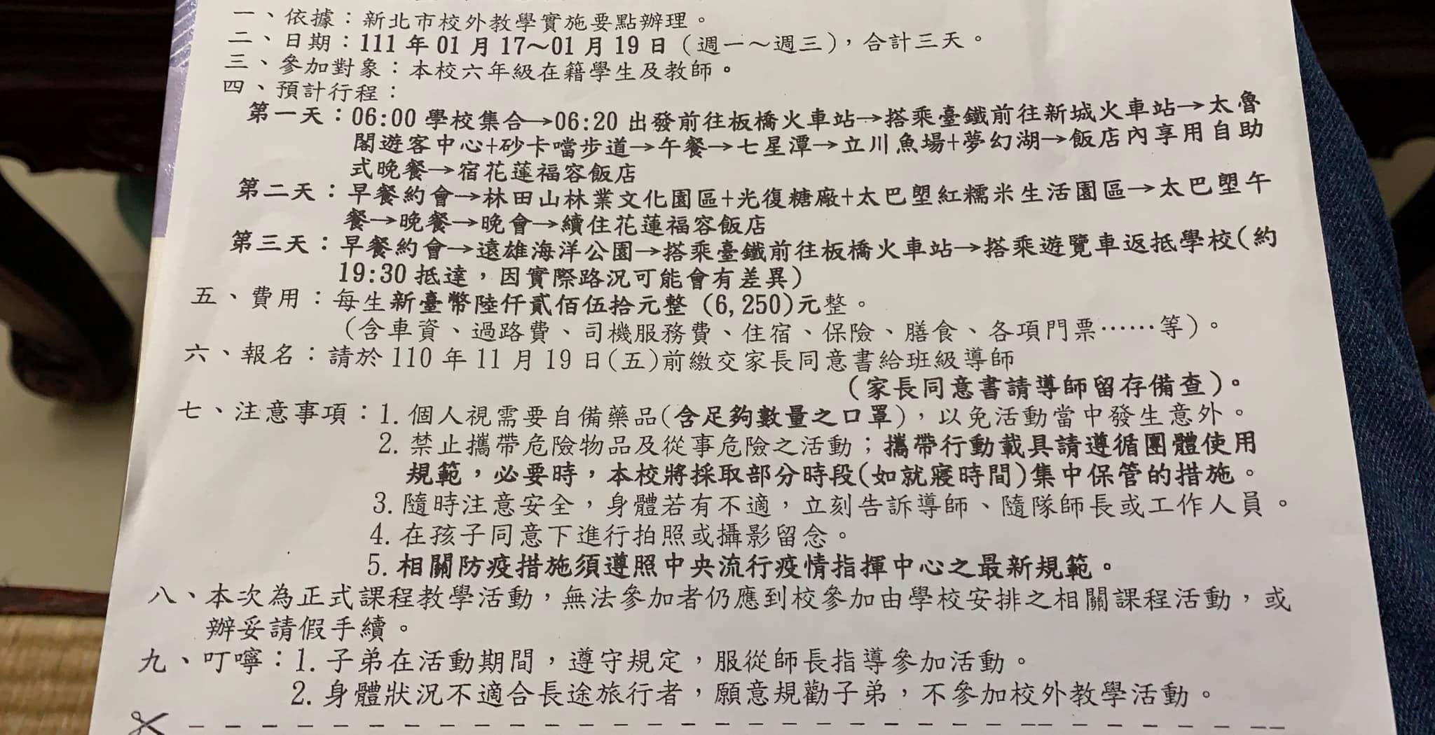 ▼原po還說,小孩就讀的學校六年級共有15個班級,老師和領隊們要一次帶領這麼多小孩出門,一定非常辛苦。她「只是單純想了解、大家畢旅行程及費用」。