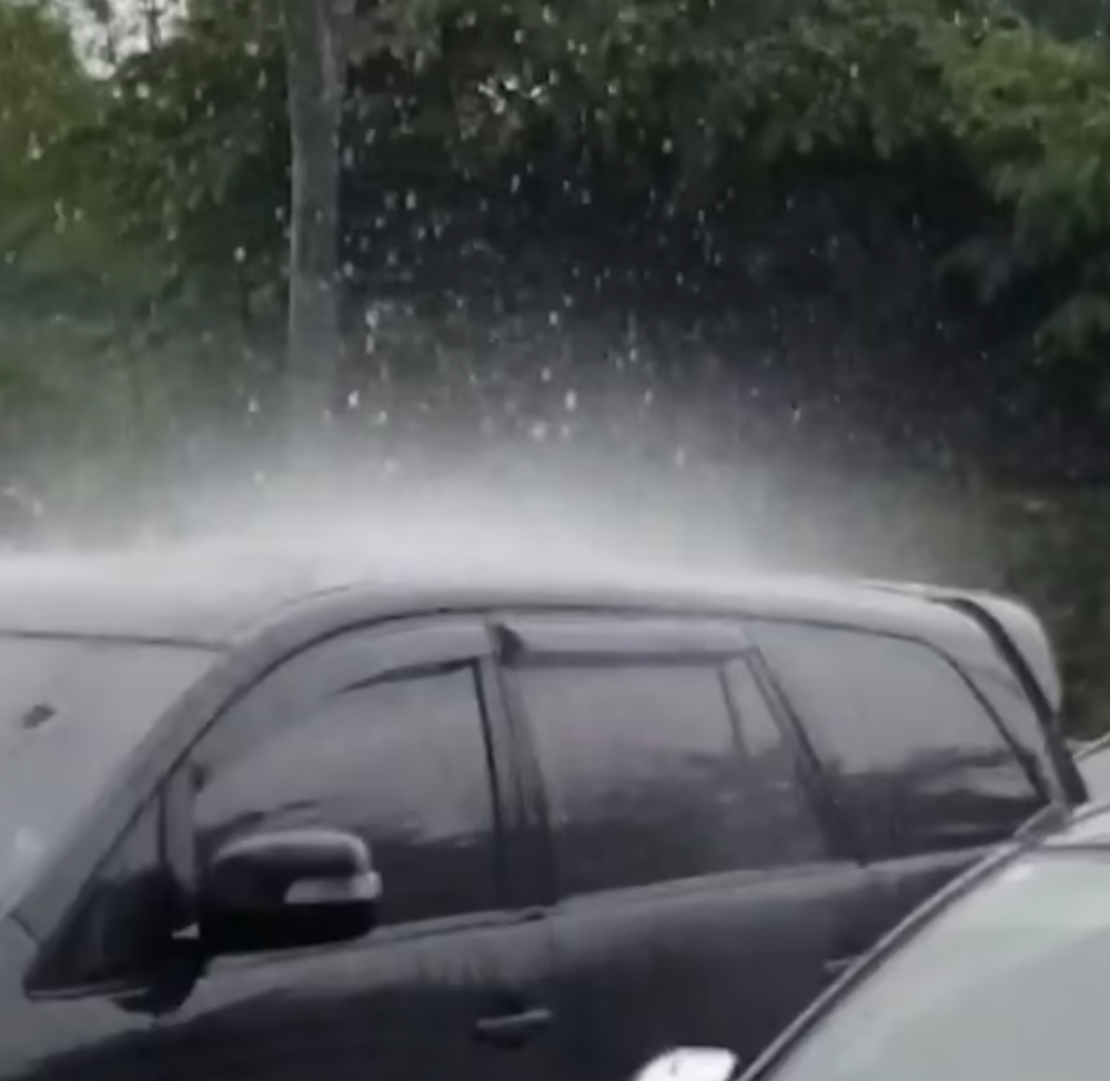 停車場天降怪雨! 「只有一台車中獎」網笑:老天爺免費幫洗車