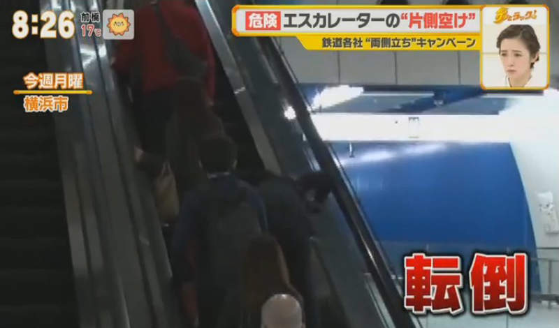 ▼去年東京發生的手扶梯意外數量創下新高,雖然鐵路公司一直在宣傳「站在手扶梯兩邊」,人們還是習慣空出一側,讓趕時間的人走,但在手扶梯上走其實很不安全!