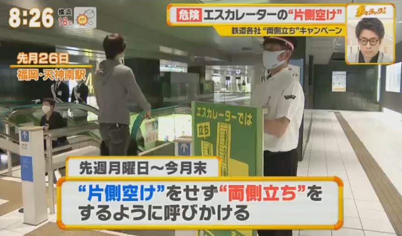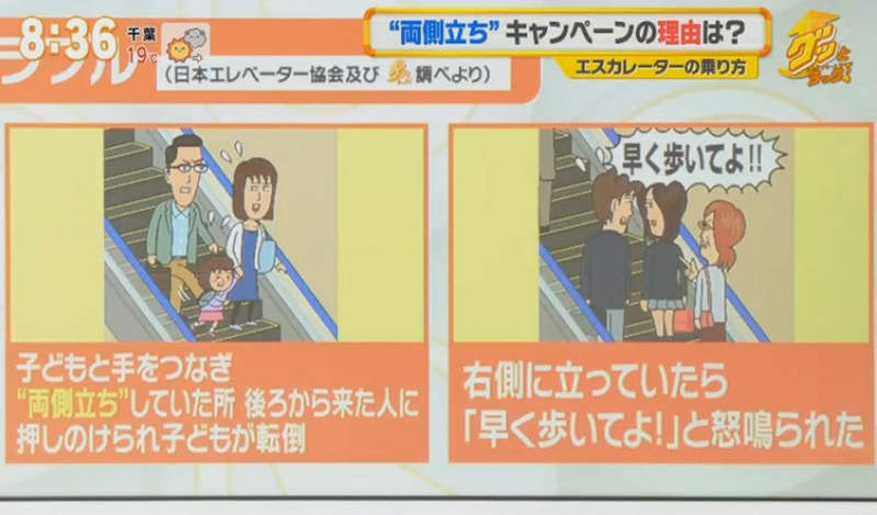 ▼今年10月26日到11月3日,日本全國鐵路公司舉辦為期一個月的「搭手扶梯不要走」宣導活動。