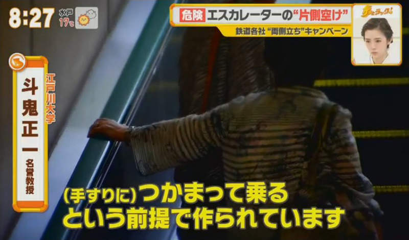 ▼專家解釋說:「手扶梯原本就不是設計來給人走的。廠商當初設計的時候就是要人緊握扶手、站穩踏階。」