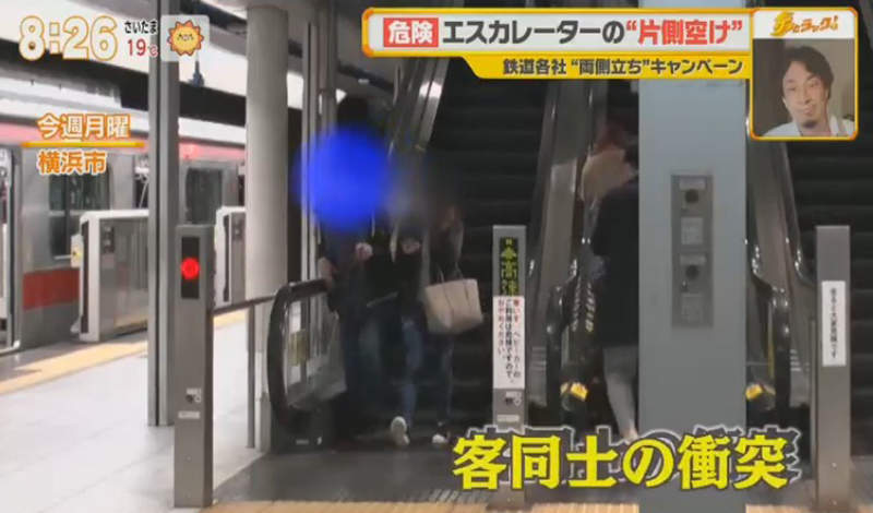 ▼日本TBS電視台在通勤時間到車站觀察,結果發現神奈川縣橫濱市某車站:100人當中有44人站著,56人用走的;
