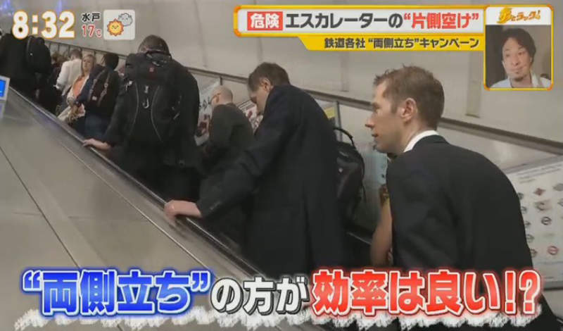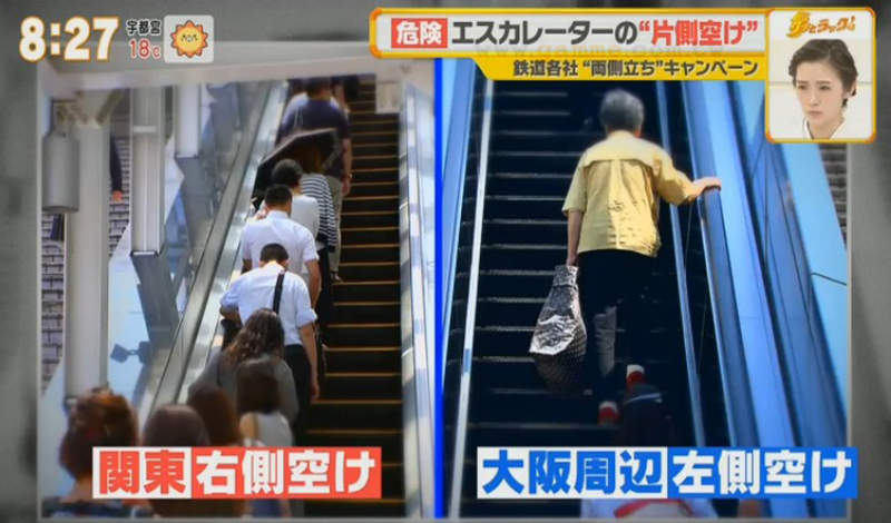 ▼直到現在,日本關東地區還是習慣「站左邊空右邊」、關西地區則習慣「站右邊空左邊」。這已經成為一種慣例,趕時間的人發現原本空著的那一邊有人站著,就會暴躁地破口大罵,甚至動手。這導致惡性循環,民眾為了不惹上麻煩,還是寧願站在一邊空出一邊。