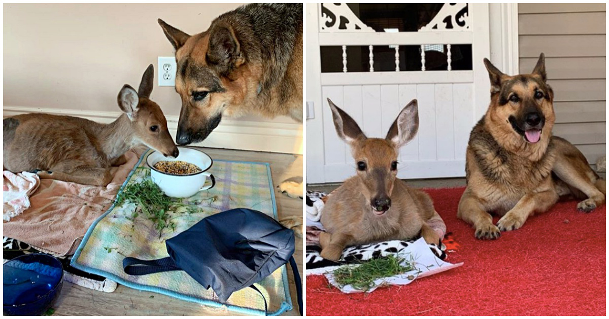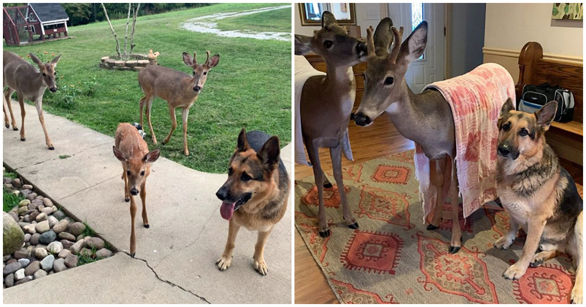 德牧自己認養孤兒小鹿! 「教牠走路」一手養大…小鹿猛蹭:最愛泥❤️