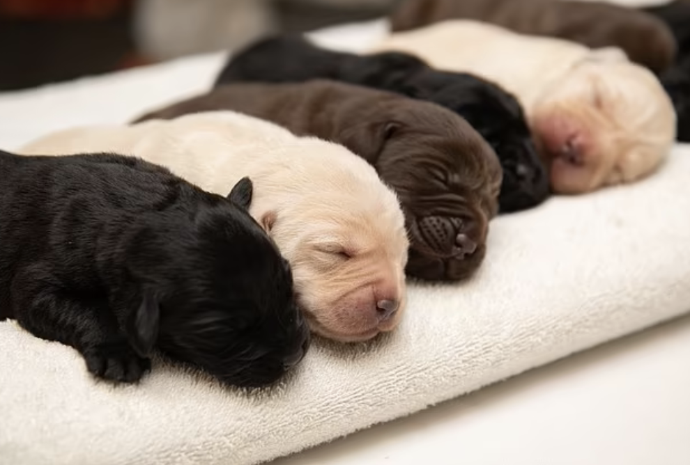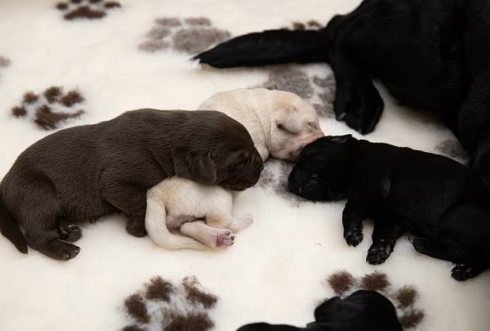 完美混色!黑拉拉竟生下「3色小奶狗」 網笑:生著生著就沒墨了