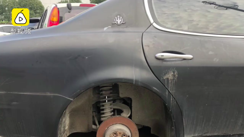 ▼一位改裝車輛的朋友知道胡男有一輛閒置的瑪莎拉蒂,就建議他把車改裝成禮車出租。胡男覺得這是個好主意,這才去那塊空地移車,但到現場後,他發現自己的車子被偷得只剩車殼,「反正能拆的都拆了,拆走的都是直接能用的,一點都沒給我剩下。」