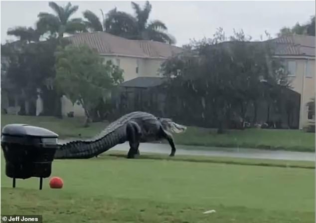 2021年11月15日美國佛羅里達州經常有短吻鱷出沒,該州估計有130多萬隻野生短吻鱷。近日在佛羅里達州那不勒斯(Naples)的高爾夫球場,一位網友Jeff Jones拍到了一隻約3公尺長的巨大鱷魚。牠超誇張的體型很快就在網路上引發熱議!