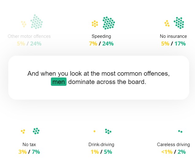 ▼這個網站以英國交通事故、違規等數據,發現了一個非常驚人的事實:在馬路上違規的人,有多達79%的比例是男生!