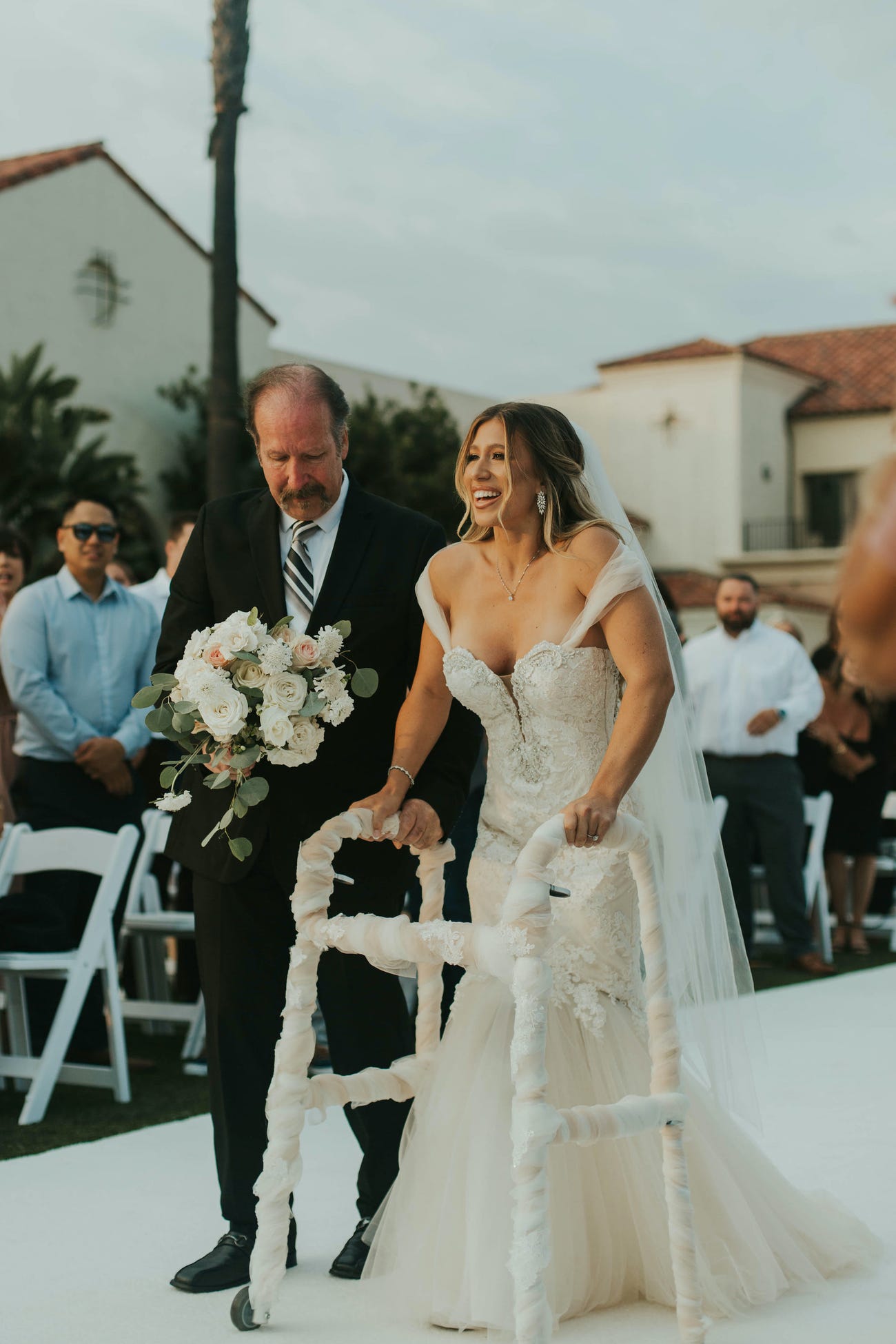 ▼Chelsie早就想好,在婚禮上要借助腿部支架站起來,一步步走到心愛的人身邊。婚禮之後的舞會上,她還特別設計了一支舞蹈,要給Jay一個驚喜。所以婚紗的裙擺不能太長,否則行動不便。這件婚紗的裙擺能夠拆下來,正好符合Chelsie的需求。