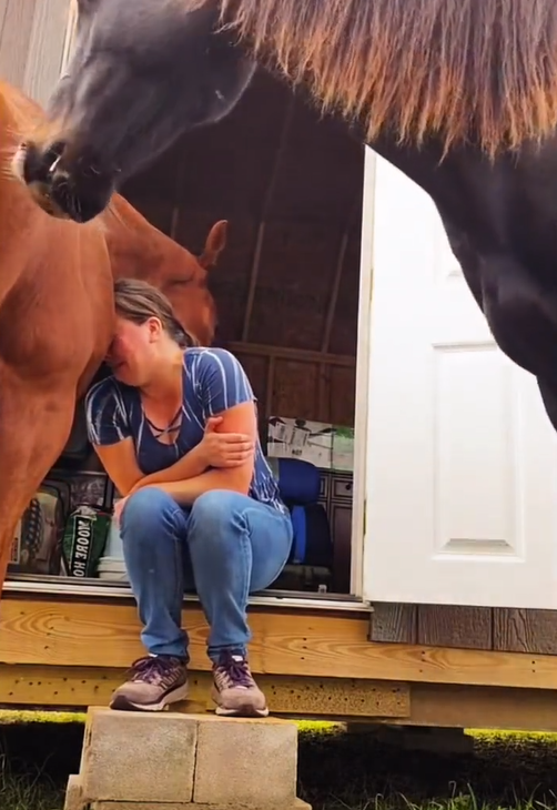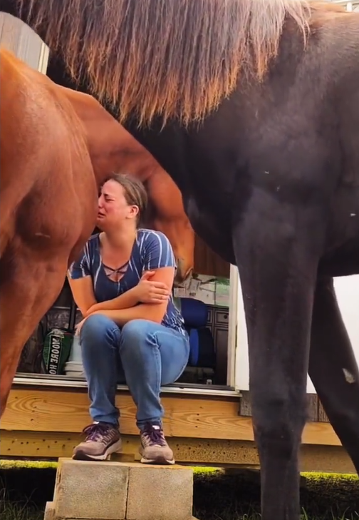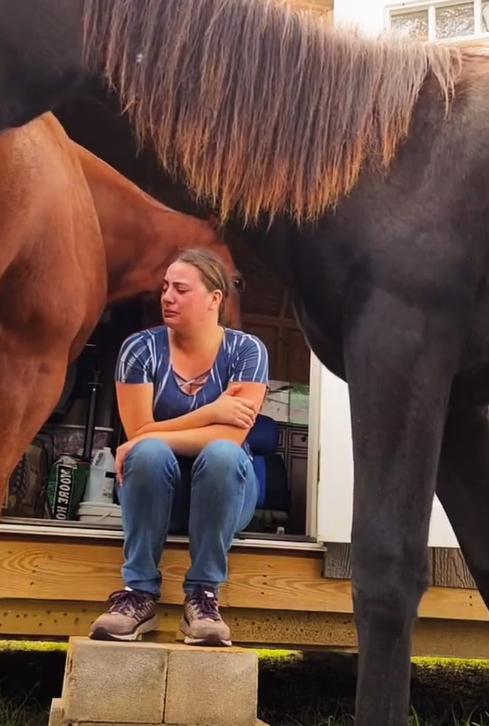 網友們紛紛留言說:「雖然不會說話,但牠們其實什麼都懂」、「馬兒:給妳一個抱抱,不要再哭了」、「馬真的是一種很有靈性的動物」、「超有愛的畫面」、「這也太暖心了吧」~
