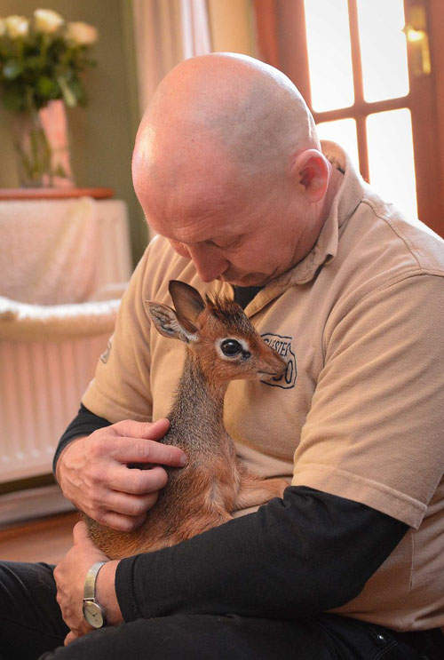 ▼多年前就曾經有一隻剛出生不久的小犬羚被媽媽遺留在路邊,於是英國切實特動物園(Chester Zoo)的飼育員就接手了照顧牠的任務。