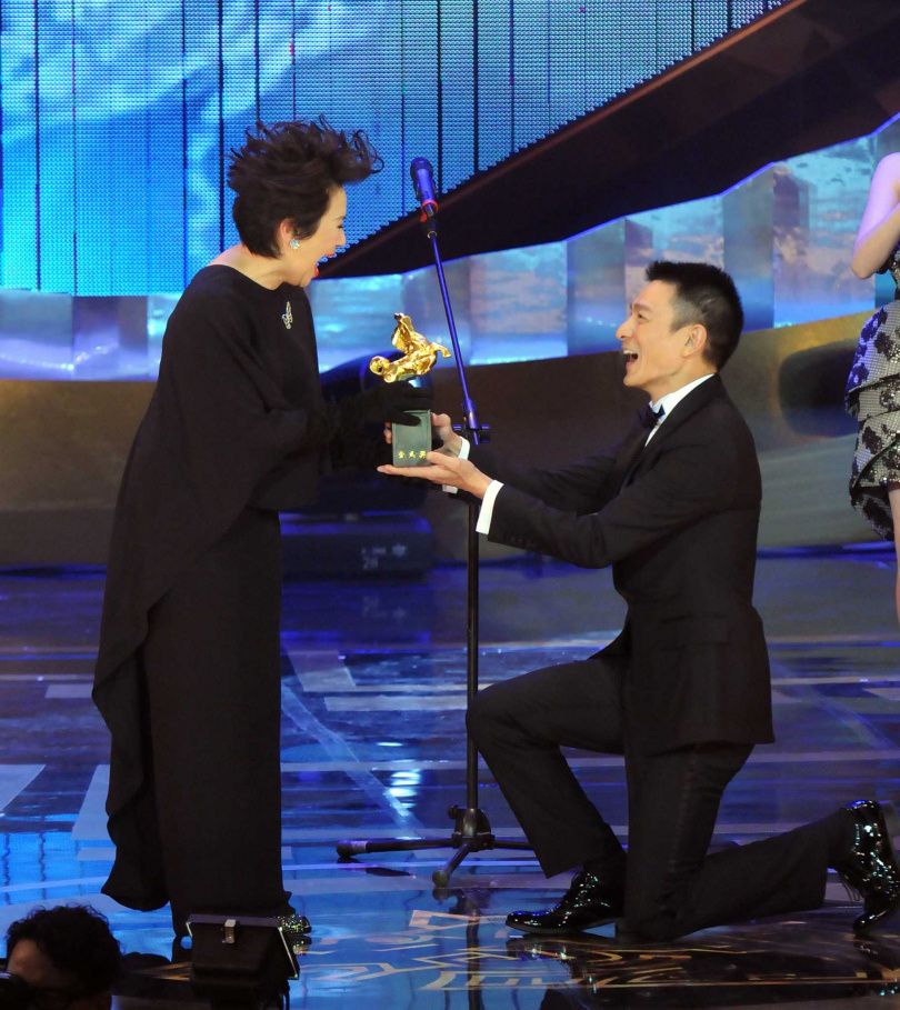 ▼幾年前劉德華邀請葉德嫻一起拍電影《桃姐》,葉德嫻因此拿下威尼斯影展、歐亞電影大獎、亞洲電影大獎、金馬獎等9座最佳女主角獎座,成為國際影后。在第48屆金馬獎頒獎典禮上,葉德嫻拿下影后獎座時,劉德華陪她上台,並當眾單膝下跪把獎座獻給她。