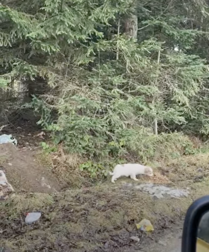 ▼Elisa和同伴們趕到那處森林,很快就找到了Willow。牠躲在一個廢輪胎邊,對人充滿警惕,每次有人靠近,牠就會跑到森林深處。Elisa和同伴將食物放在公路邊,然後躲到車上觀察情況。聰明的Willow確定周圍沒有人後才跑過去大吃起來。