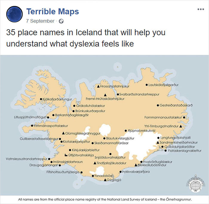 ▼冰島這35個地名超級不好發音,讓人懷疑自己得了閱讀障礙。