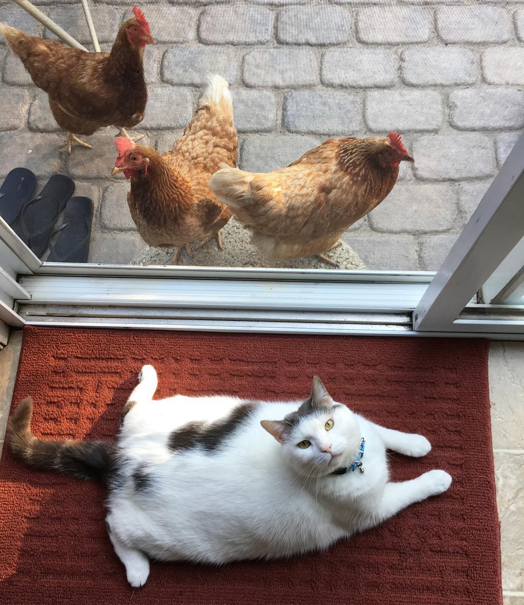 胖貓皇離奇收編「雞群鐵粉」 每天躺門口「擺不同英姿」接受膜拜