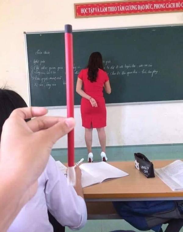 ▼文具跟老師的衣服配對成功,看起來很有趣。認真講課的老師應該不知道學生們在做什麼吧~
