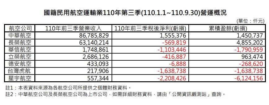 ▼另外,民航局在「國籍航空公司110年第三季財務重點專區」新揭露的資訊,在「一年內到期長期負債」是否大於「現金+修正後現金流量-預收機票款」的指標中,星宇航空是唯一達標者。民航局認為,星宇航空的累虧情形已是一項警訊,要求增資。