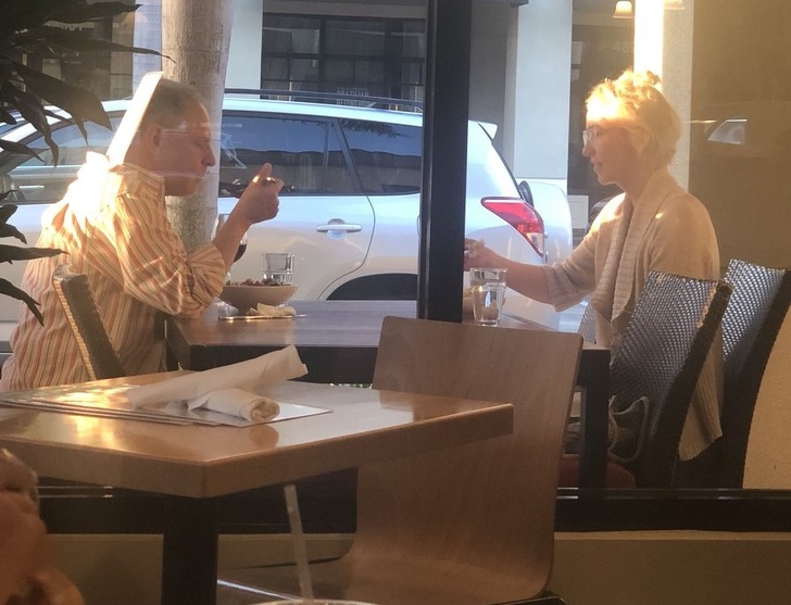 ▼「這個男人為了幫約會對象遮夕陽,他不顧形象直接拿菜單放到後腦勺。」