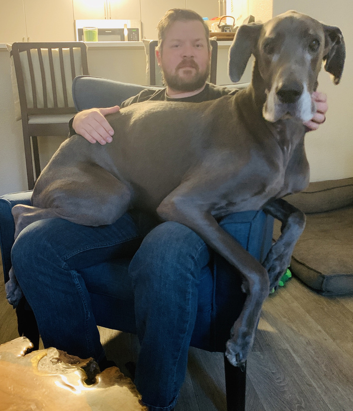 ▼完全不懂自己已經變得有多巨大的萌犬。