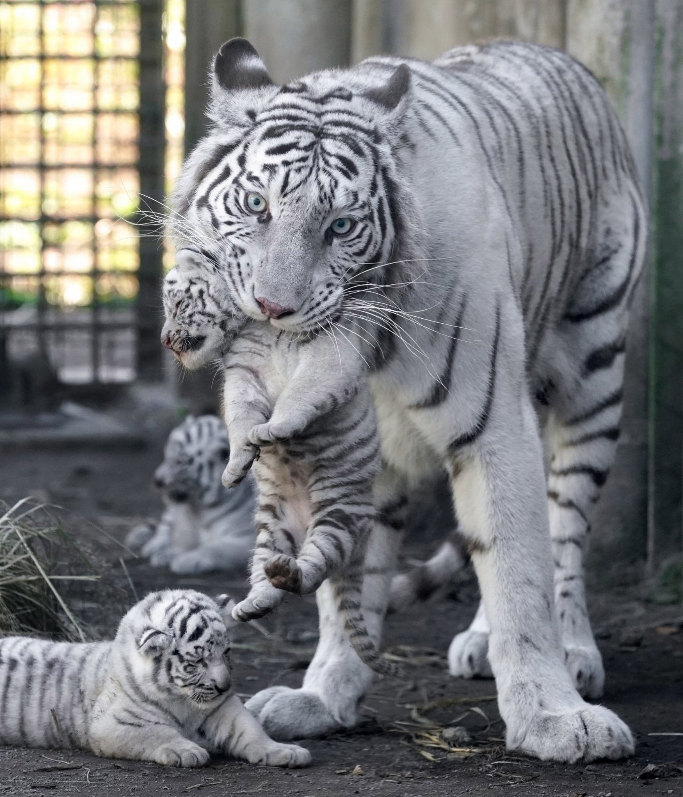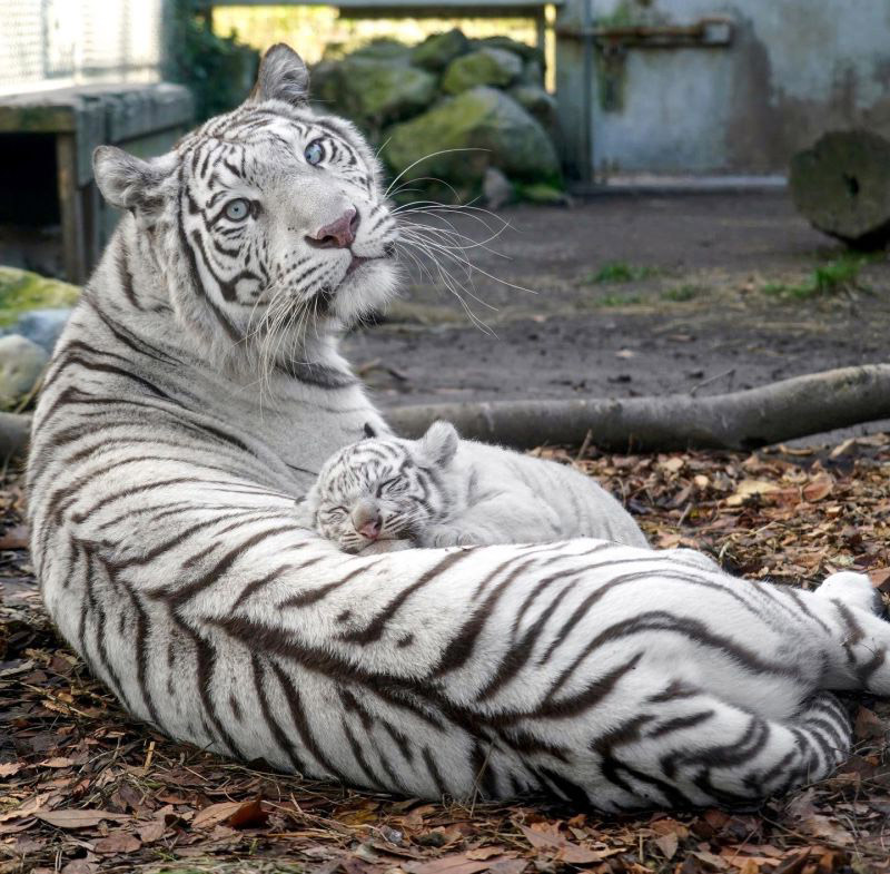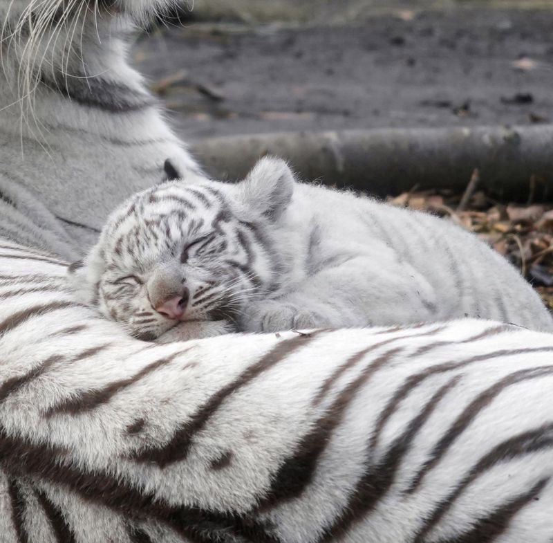2021年12月06日最近日本人氣動物樂園「伊豆動物王國(伊豆アニマルキングダム)」的一隻白虎媽媽迎來了一窩可愛的寶寶。小白虎們平時非常調皮,但睡著時特別Q萌,就像小天使一樣。那天一位網友去參觀時,剛好拍到了其中一隻虎寶寶窩在馬麻身上熟睡的模樣,母子之間的氣氛超溫馨~