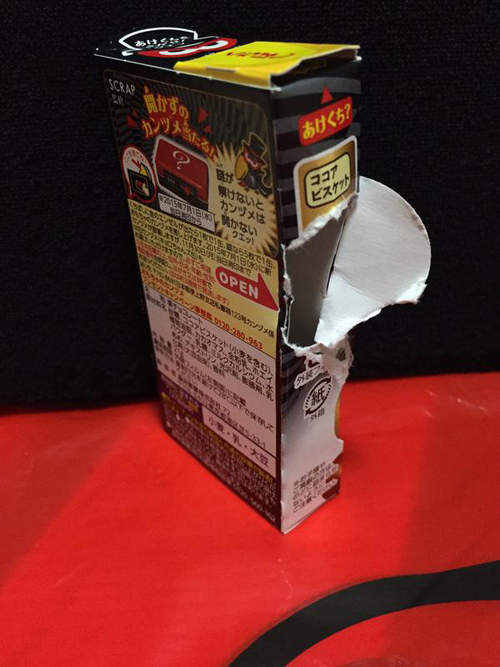▼盒子底部寫著「你有試過其他的開口嗎?真正的開口不是這樣」。