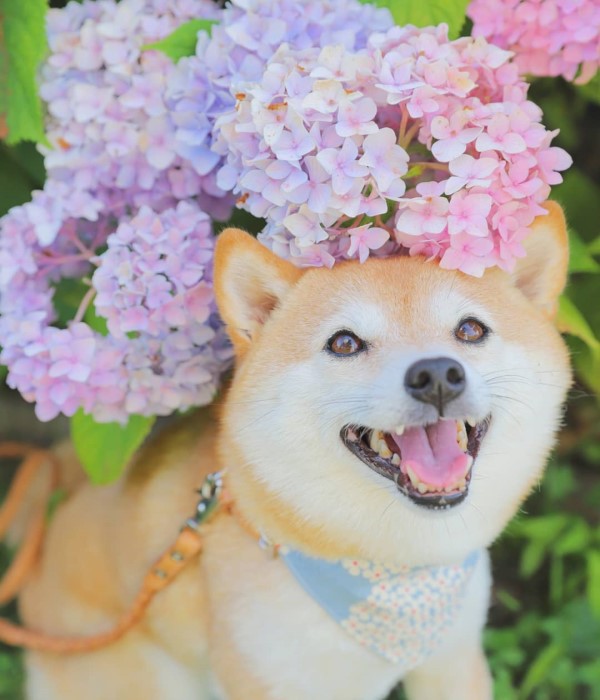 狗狗也喜歡美的事物~ 柴柴一見花就「瞇眼微笑」:倫家最愛賞花了!