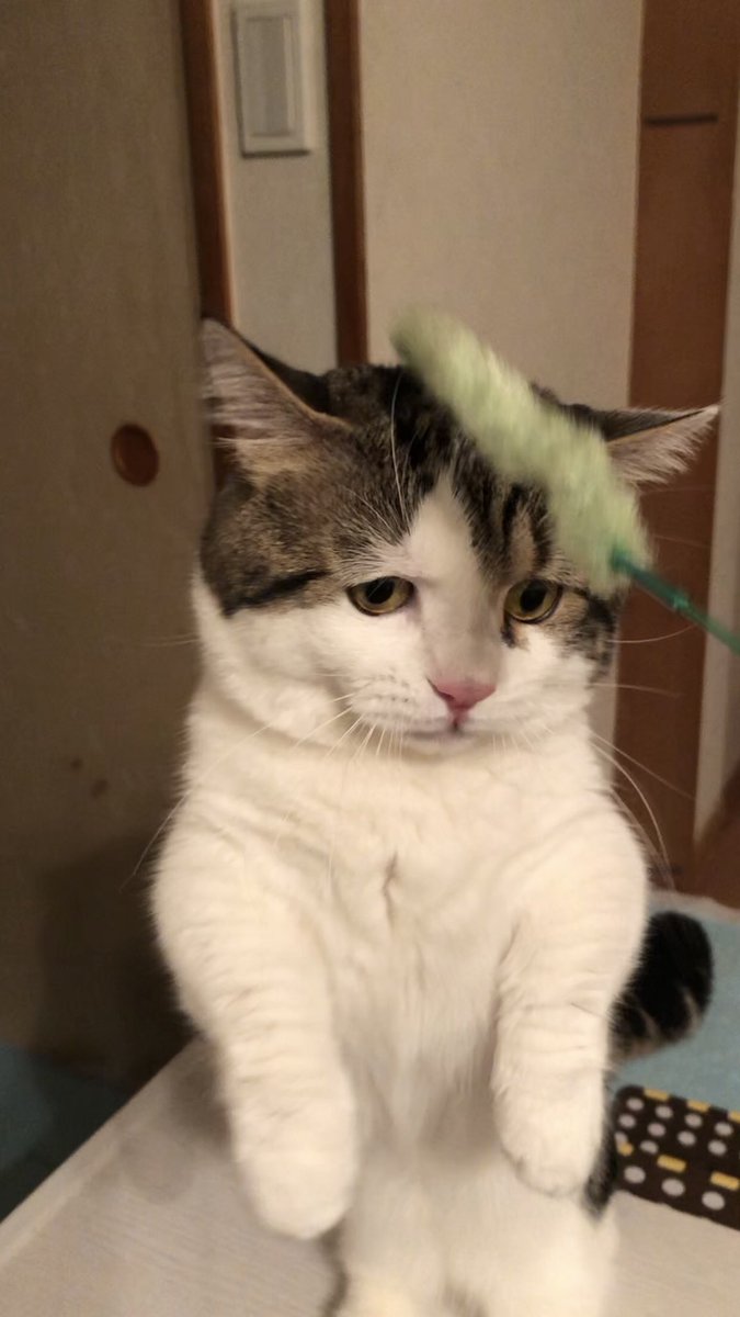 ▼日本推主@raichanniki養的貓咪Raito就非常喜歡玩逗貓棒,近日他在推特上PO文,「抓住玩具時跟沒抓到時的表情反差好大」。從照片中可以看到,貓咪Raito一臉認真地抓逗貓棒。