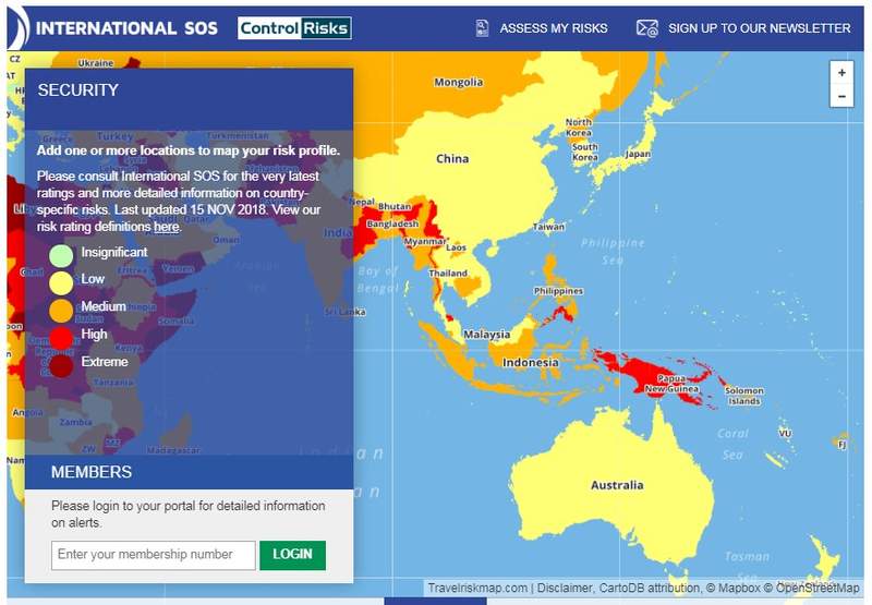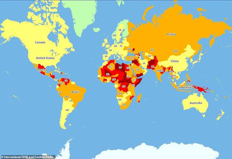2021年12月11日在International SOS所做的國家危險程度調查中,最危險的國家主要分佈在中非、敘利亞、阿富汗等地,最安全的則是北歐國家;台、日、韓、澳、紐等被歸於「低危險」程度。
